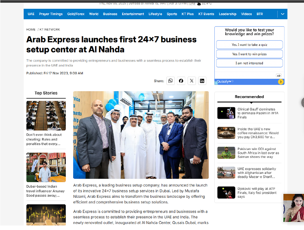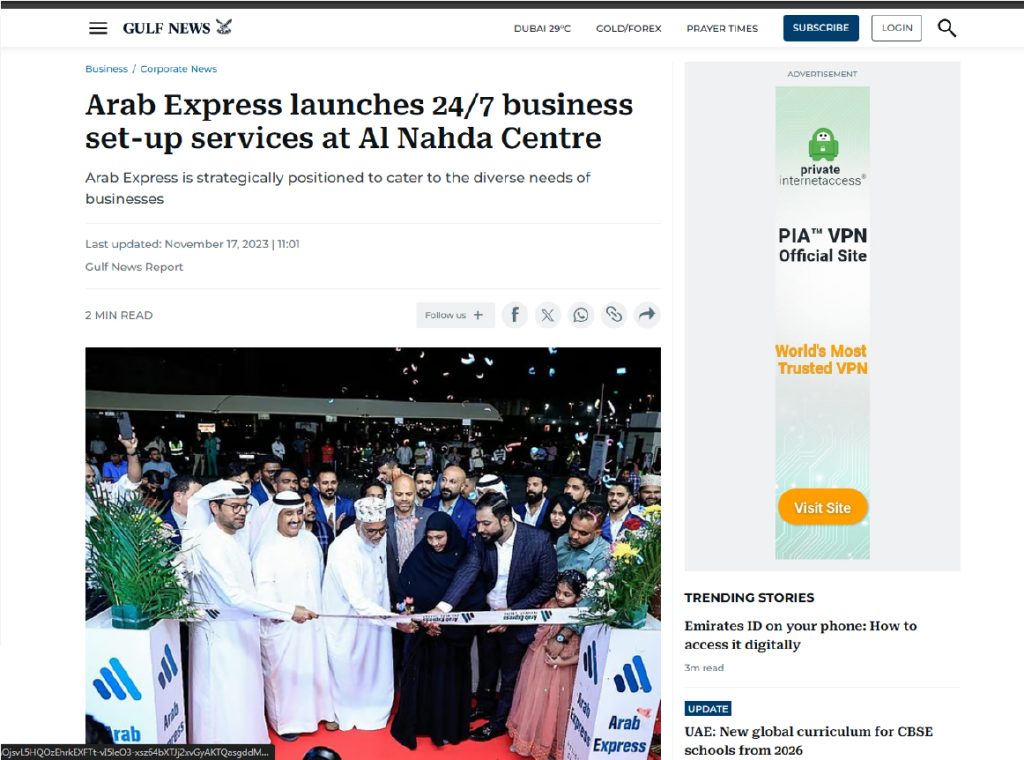 “Arab Express launches 24×7 business setup services at Al Nahda Centre, redefining convenience for entrepreneurs in Dubai.”.